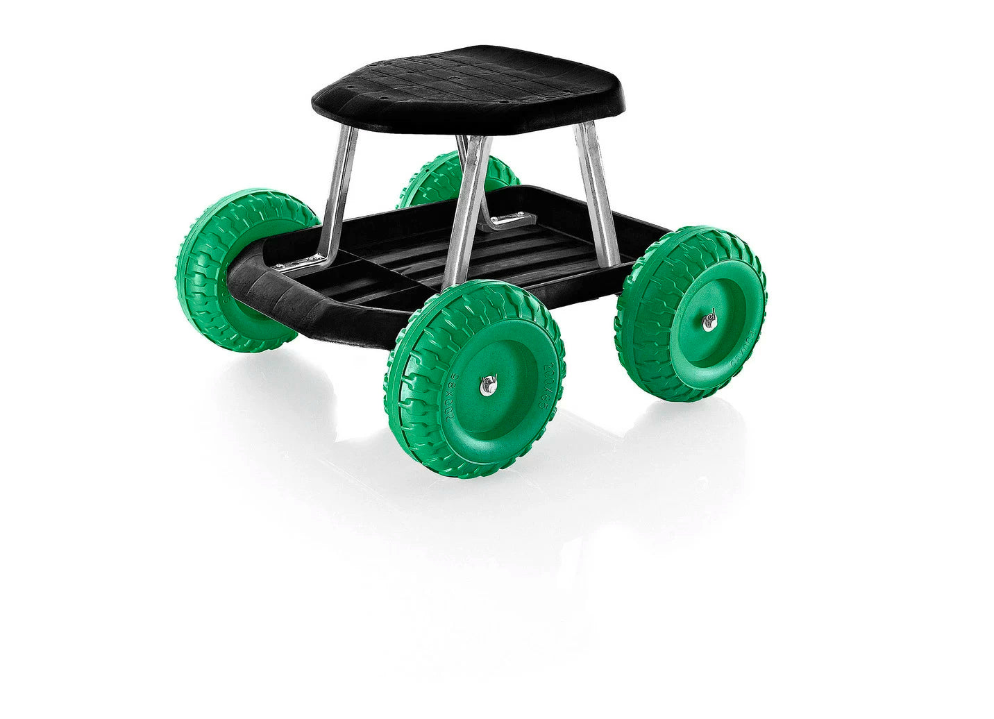 Rollsitz mit stabilem Stahlrohrgestell in Grün-Schwarz.