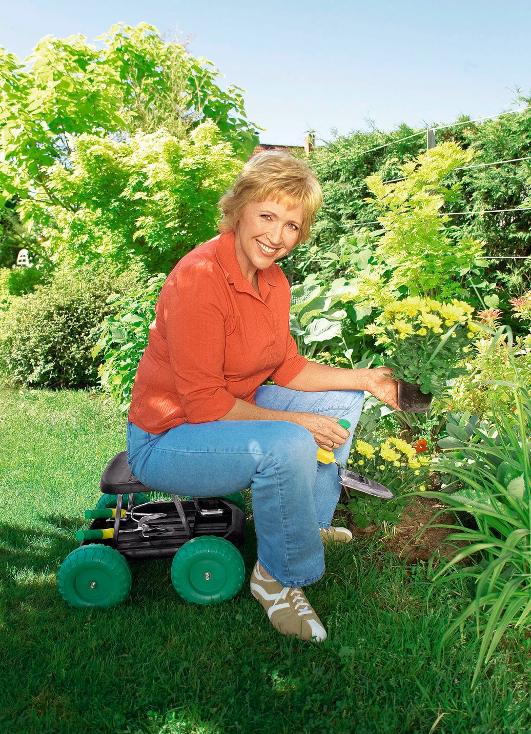 Mit diesem tollen und knieschonenden Rollsitz können Sie im Sitzen arbeiten. Mit praktischer Ablage für Handgeräte unter dem Sitz. Stabiles Stahlrohrgestell mit super leichtgängigen Kunststoffrädern. Belastbar bis 130 kg.